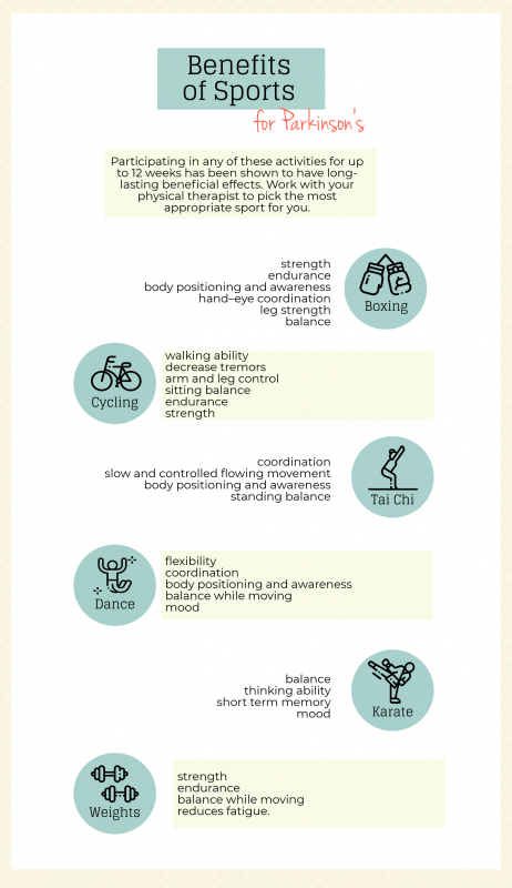 Regardless of the specific activity, exercise following a diagnosis of Parkinson’s Disease is incredibly important. The Parkinson’s Outcome Project (Parkinson’s Foundation) states “people with PD who exercised regularly for 2.5 hours a week had a smaller decline in mobility and quality of life over two years.” No one doubts the benefits of exercise in any individual, but for those experiencing Parkinson’s Disease, exercise should be a top priority.