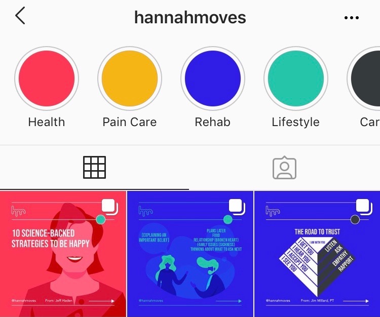 Nick Hannah, PT LinkedIn | Instagram Nick Hannah shares well-made graphics that break down crucial information that clinicians and clients need to hear. His Instagram is filled with a goldmine of facts and lessons to help the spread of best practices in physical therapy.